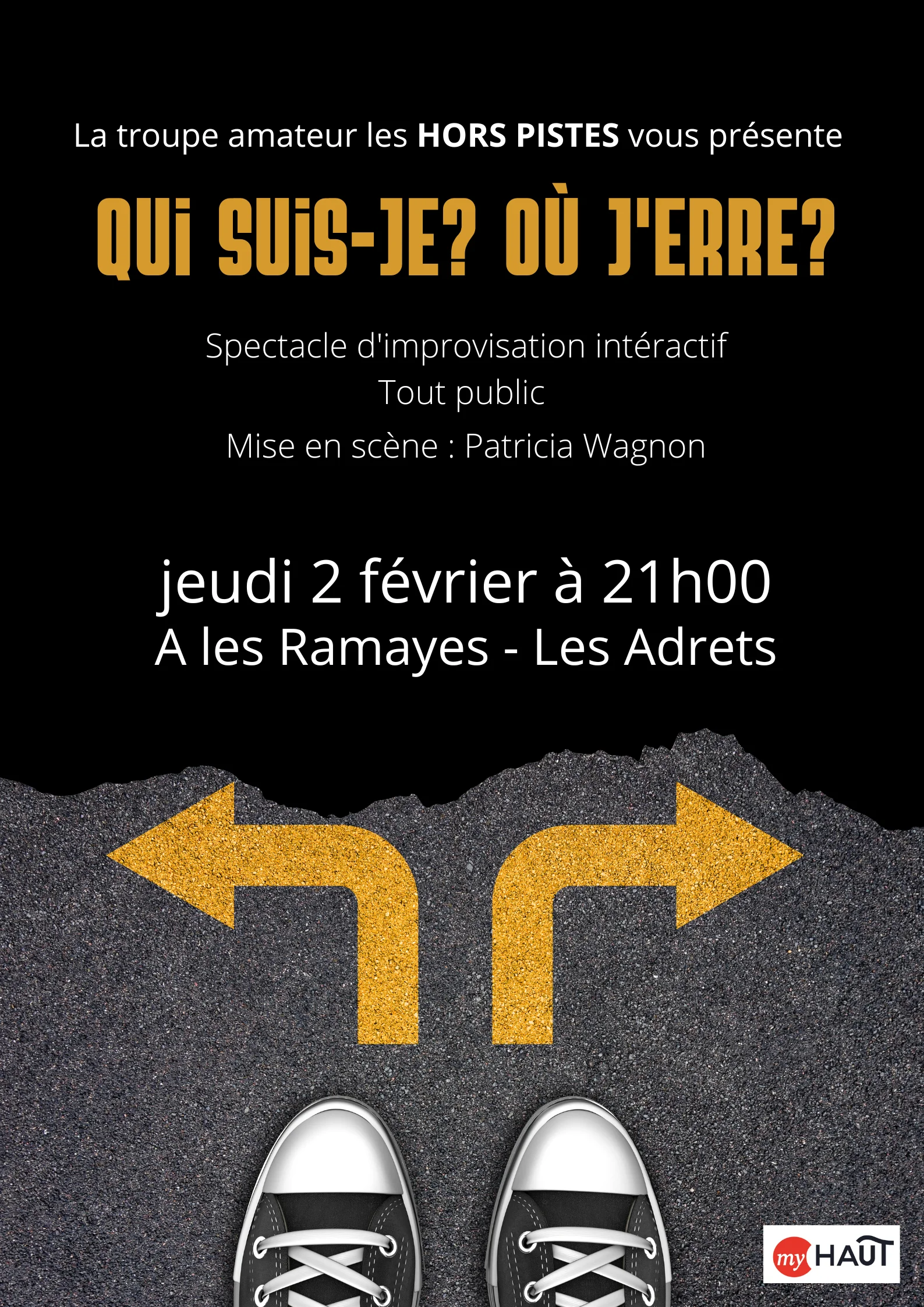 La troupe des hors Pistes joue son format de jeu : Qui suis-je, où j’erre ?, en station à Prapoutel (7laux), le 2 février à 21H00.